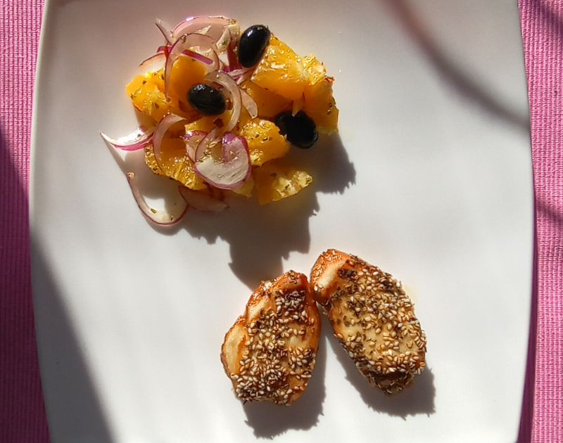 Ne volim zimu. Znam, rekla sam to više puta, ali zaista je tako. Zato čim vidim sunce, ja pomislim na Grčku, letovanje, grčke salate, morske plodove, miris mora rano ujutru, dok većina turista još uvek spava, a moj dragi i ja šetamo, upijajući svu onu lepotu. E baš zato, što nam oboma sve to nedostaje, napravila sam ovu grčku salatu od pomorandže.